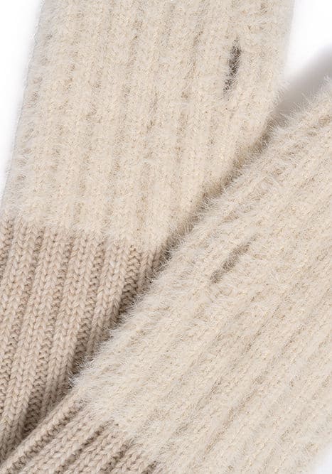 Beżowe miękkie mitenki damskie z wełną merino